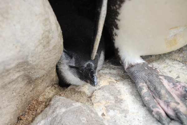 ヒナの顔にフリッパーがのっかってます。重くない?