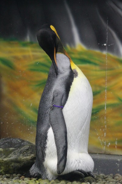 越前松島水族館の女王様ペンギン、これはデフォルトの抱卵姿勢ですが、