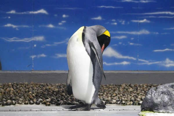 越前松島水族館のキング、女王ハッちゃん、真後ろに首を回して背中の真ん中をクチバシでくちゅくちゅ。でもこれはまだまだ序の口。
