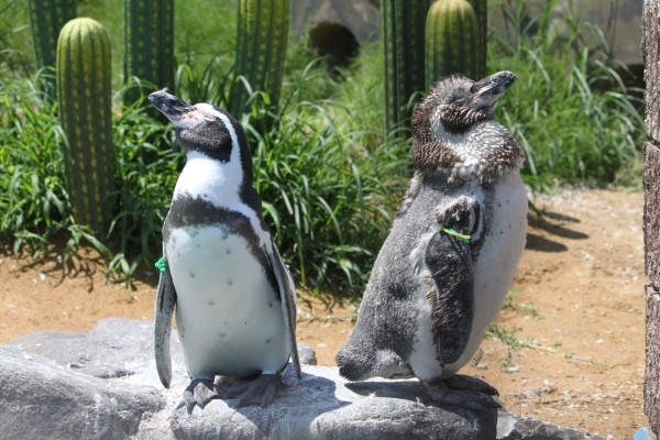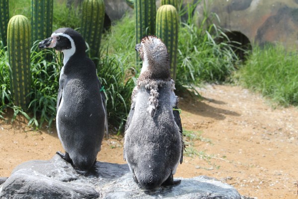 夏はフンボルトの換羽シーズンです。越前松島水族館のフンボルト、右は換羽中もさもさ、左は換羽後スッキリ。