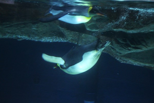 上がキング、下がエンペラー。水中ではどちらも身軽に泳ぎますが、身体が大きい分エンペラーのほうが長い間かつ深く潜ることができます。