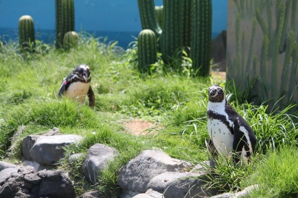 越前松島水族館の旧フンボルトプール。雑草が生い茂り、サボテンがにょきにょき。自然っぽくていい感じです。ただし、天然の環境でサボテンとみずみずしい草がいっしょに生えるかどうかはわかりません。今のフンボルトプールは、陸場全体に大屋根がかかっているので雨が当たらず、彼らの野生棲息地であるチリ沿岸部の砂漠地と同じように乾燥しています。