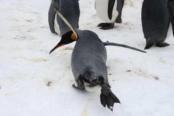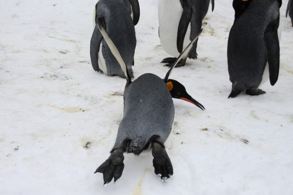 ううーんとフリッパーと足を伸ばして、気持ちよさそう。おくつろぎ中でした。ただ気になるのは、雪の上のヨゴレがハラにしっかりとプリントされているだろうということです。旭山動物園にて。