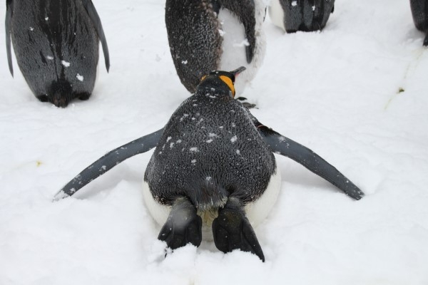 雪の冷たさをしみじみとハラで味わうキング。前回のキングも、最初はこんなふうに寝ころんでいたのでしょう。力を抜いているからか、ぼてりんとハラ肉(脂肪?)がひろがって、ゆるい水入り風船みたい。