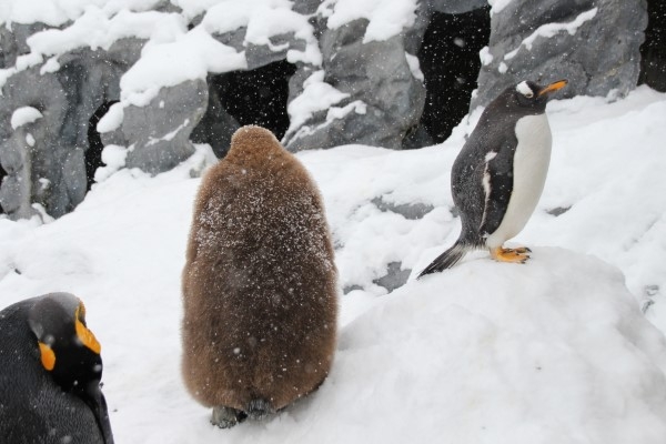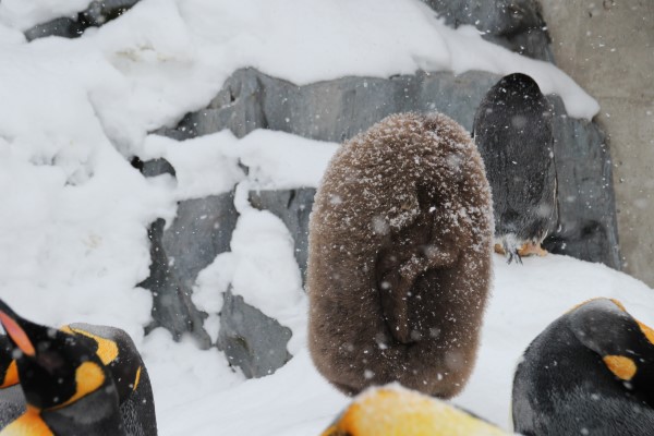 旭山動物園。キングひなは、すっかり大きくなると単独で過ごすことが多くなります。細かな雪が降っていて、