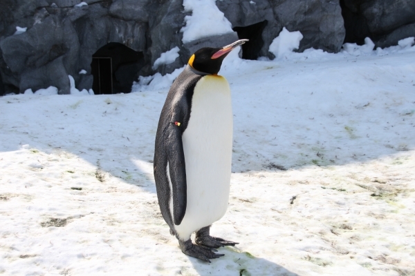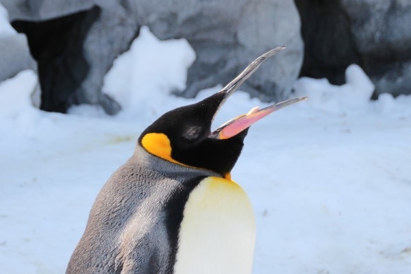 アクビをするとお口が目のあたりまでくわっと開きます。ぴょこっと見えている細い舌の先端がかわいいですね。口を開けた時、上下クチバシの先端間の距離はペンギン18種の中で一番長いそうです。
