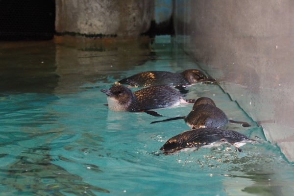 見るからに小さい、その名もコガタペンギン、またの名をフェアリーペンギン。妖精のようだからフェアリー。体重は1kgほどで、全国でおなじみのフンボルトは4kg台ですから、「ペンギンの赤ちゃん」と間違われるのも無理はありません。@長崎ペンギン水族館