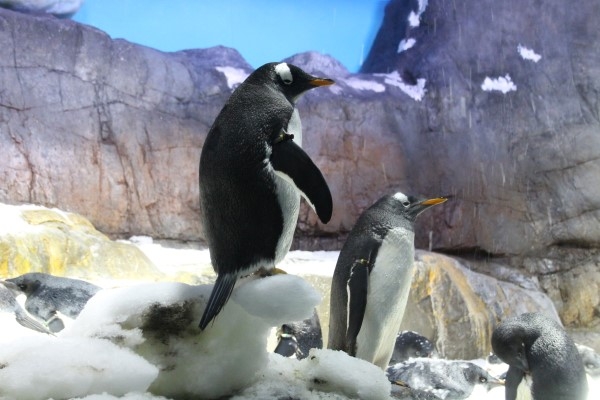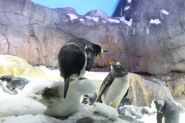 海遊館で見かけたジェンツーの小競り合い。ツツキはしませんが、かなり激しくやりあっていましたが。