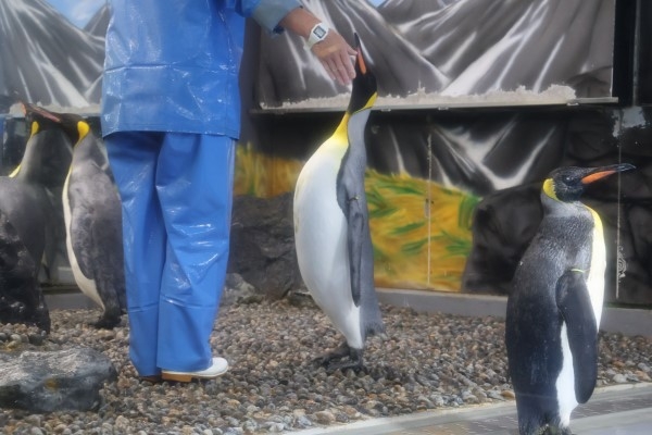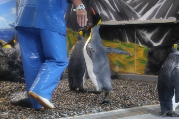 越前松島水族館の新人キング、どうしたのでしょう、飼育員さんから逃げようとしています。