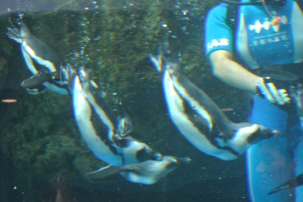 水中ペンギン、こちらの皆さんは何ペンギンでしょう? 前回の見分け手順1、2をご参考に。