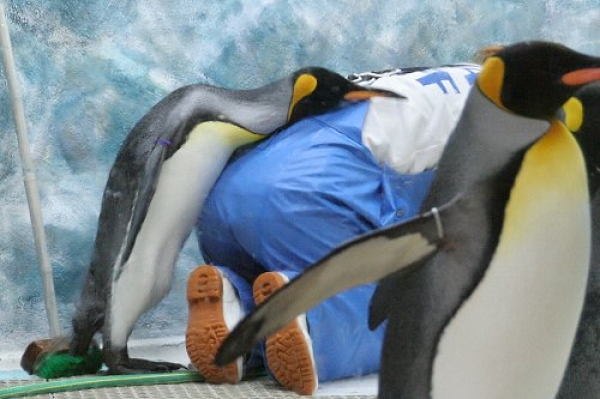 こちらは越前松島水族館の懐かしい写真。飼育員さんにべったりくっついているのは、若き日のハッちゃん女王様です。
