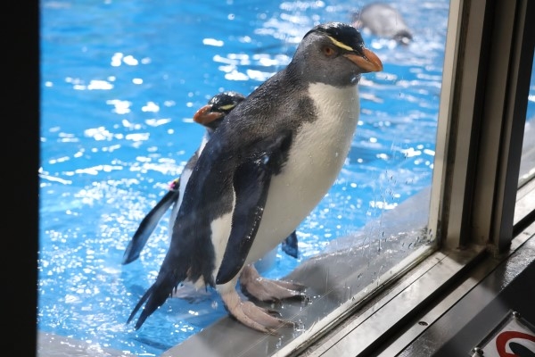 越前松島水族館のイワトビです。以前にも出しましたが、この狭くて急な斜面がすっかり気に入ったようで、いつもここで2、3羽が遊んでいます。つるつるな上に濡れている斜面でも、すべらないのですね。