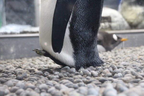 キングがこんなふうに立ってることがあります。冷え対策として、指の部分を上げて接地面積を小さくしているのだそうです。地面が冷えることがなくても、そういう習性になっているのですね。