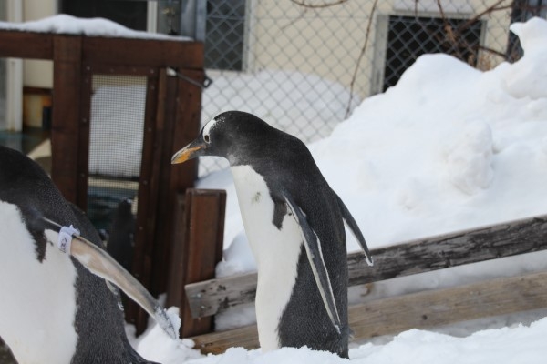 おたる水族館のジェンツー、長老格のダディ君、元気に雪上散歩に出ての帰り道です。高齢になると痩せ気味体型になるのでしょうか、ひょろんとした感じです。