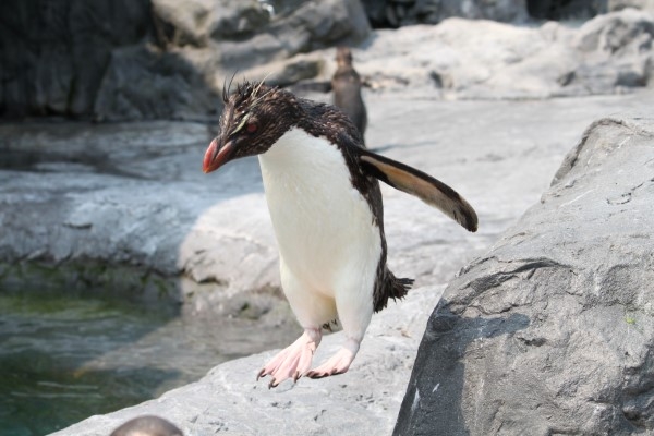 岩の上から飛び降りるイワトビ。飛び上がり、飛び降りはお手のもの。平地を行くのだってピョンピョン跳ねていきます。@旭山動物園