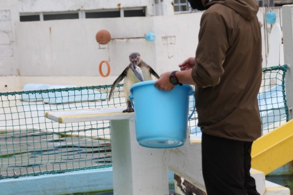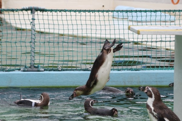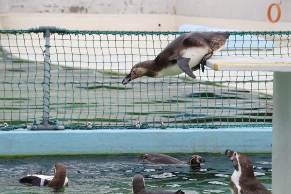 おたる水族館です。フンボルト亜成鳥、高い飛び込み台でしっかりサカナを食べてから、