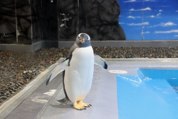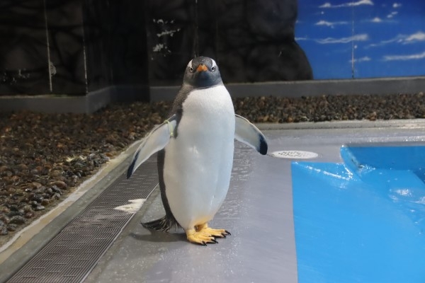 越前松島水族館のジェンツー黄色嬢、きっちりとポーズを決めています。キリッとした表情がハンサム。