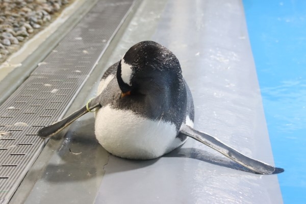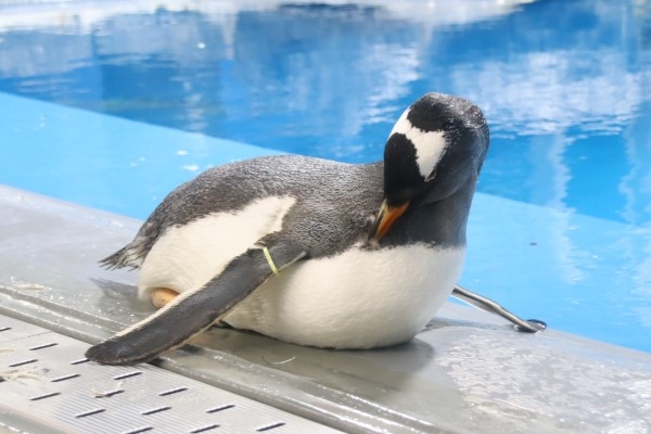 反対側から見ると、こうなっています。総じて鳥の首はよく曲がる感じですが、ペンギンも例外ではありません。