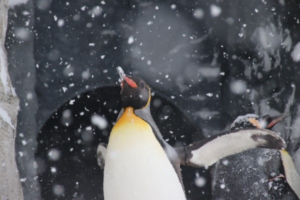 ペンギンの季節到来! ただし寒冷地系ペンギン。降りしきる雪の中、絶好調な旭山キングでした。