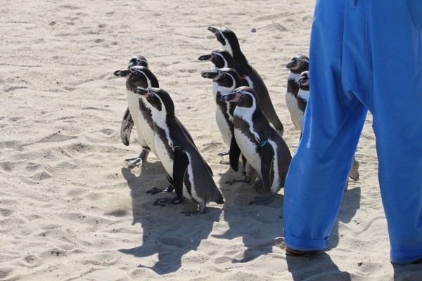 長崎ペンギン水族館のフンボルト集団、急ぎ足で館内1Fを通過していきます。ショップにはペンギンが気になりそうなこまごましたグッズが置いてありますが、目もくれません。