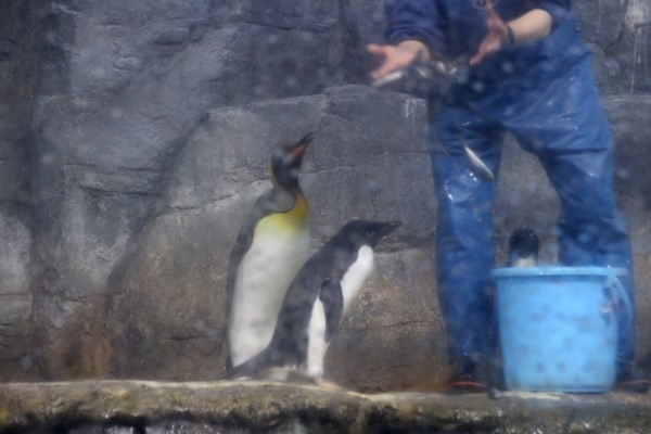ですが、手渡しがお好きな個体もいます。キングとアデリーが、餌バケツの近くで順番待ちをしていました。