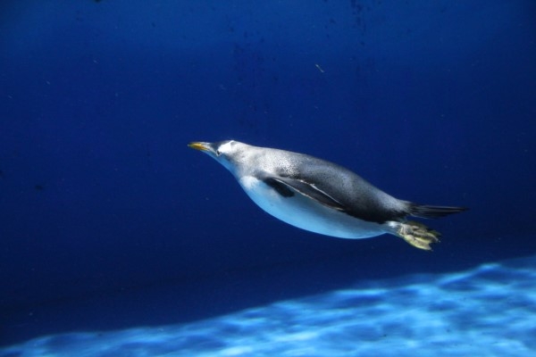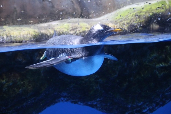 すいーっと水中を進む、アクアパーク品川のジェンツー。水の中をすいすい進める形になっています。