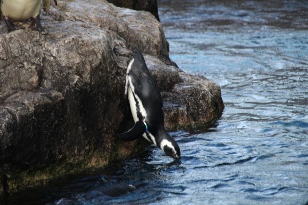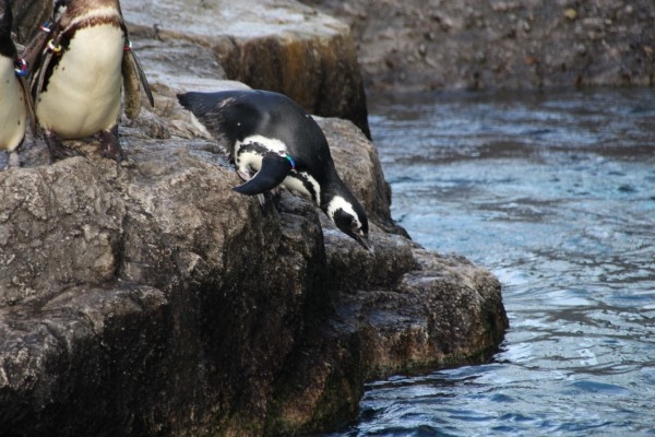 上越水族館のマゼラン、飛び込みます。まずは構えて、