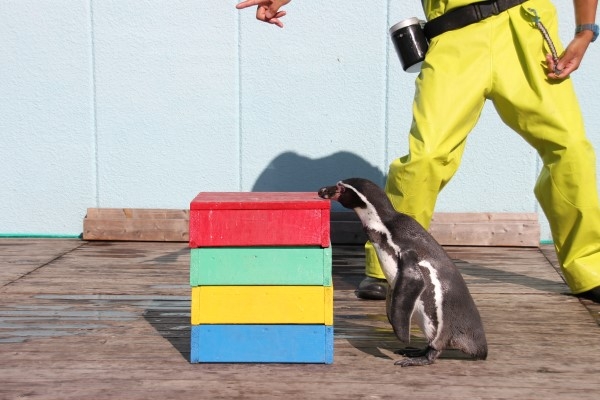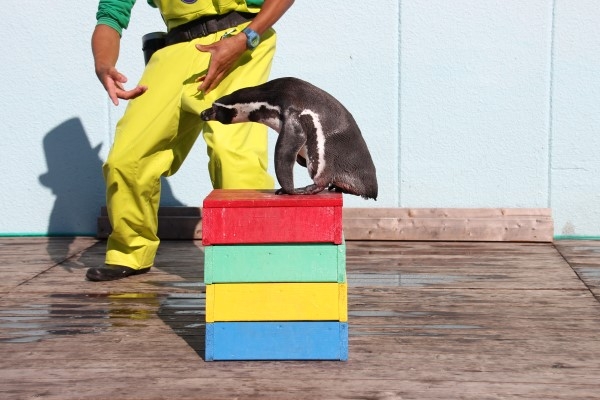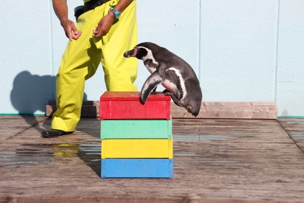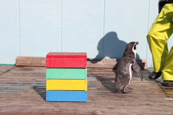 ペンギンのジャンプ力パフォーマンス、ついに台は4段になりました。南知多ビーチランドのフンボルト、どうでしょう。