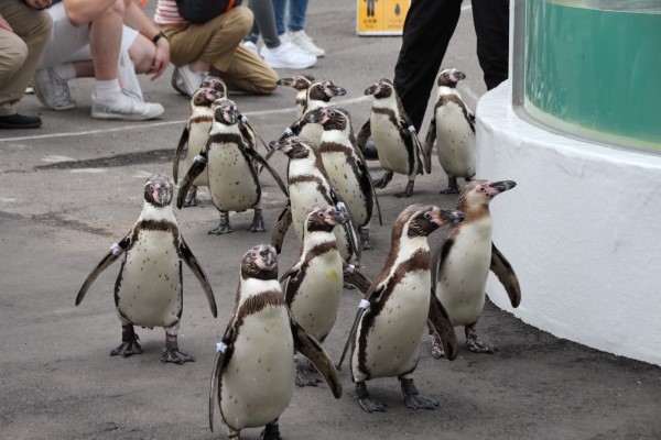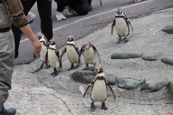 おたる水族館のペンギンイベント、海までお散歩。フンボルトが出てきました。オトナにまじって、若鳥もやる気満々です。