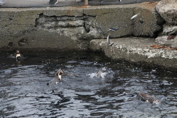 おやつのサカナがポンポンと海に投げ入れられます。遠足にはおやつが欠かせませんね。