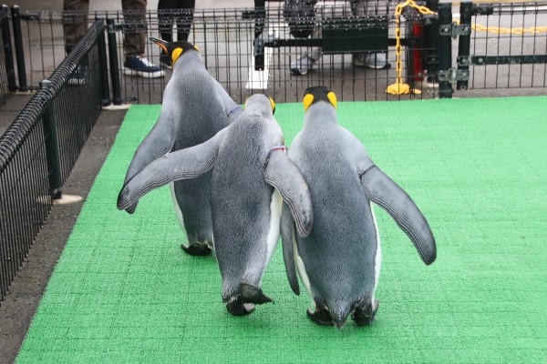 越前松島水族館の夫婦者キング、つづきです。手前は右が夫君、左は奥方様。帰るときも親密げに歩いています。前を知らん顔で行くのは女王様、夫君の元妻です。