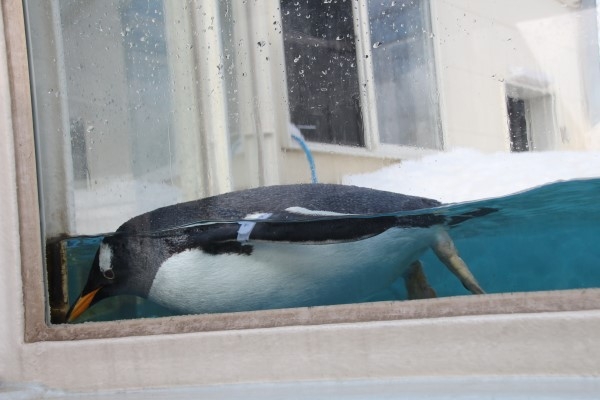 おたる水族館のジェンツー in 冬プール。隅っこが気になるのでしょうか。