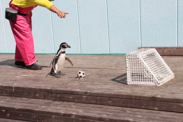 南知多ビーチランドのフンボルト、ボールの狙いを定めます。