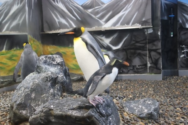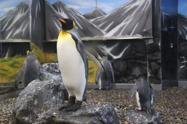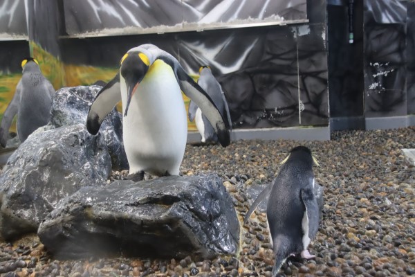 目的の地点に到達してご満悦ふうのキング。イワトビはこっそりと低い石に上がりました。後ろ姿が「ち、しょーがねえな」と残念そう?