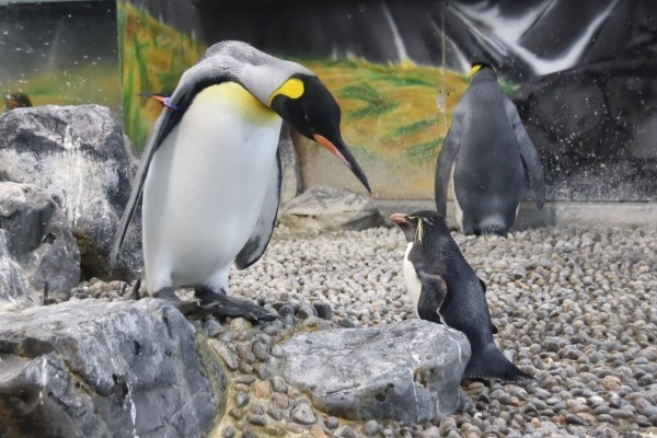 奥方様、やっこらせーっと降りました。キングは段差のあるところではとても慎重になるようです。とくに降りる場合は、段や下の様子をよく見定めてから。野生棲息地はたいていビーチや平地だからかもしれません。