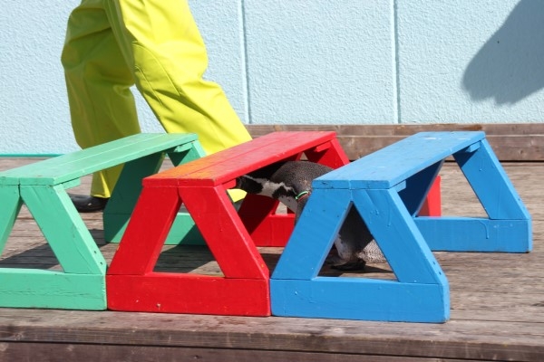 こちらも順調に進んでいくのでした。フンボルトは野生棲息地では地面に穴を掘って巣穴を作ります。なので、こういう形のパフォーマンスはやりやすいのかもしれません。