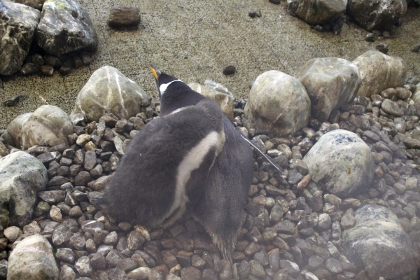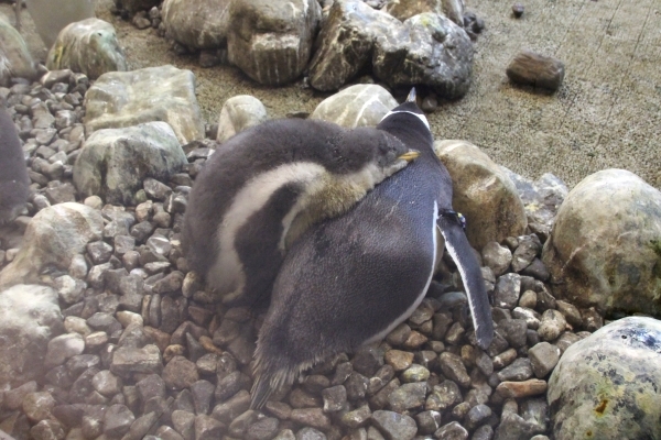 アドベンチャーワールドのジェンツー親子、お昼寝の図。