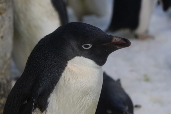 アデリーペンギンの目のフチは白くて、黒いお顔にクッキリ目立ちます。