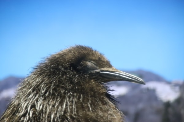 海遊館の23年夏生まれキングヒナ、年を越して4月の写真です。パッと見、巨大な怪鳥の休息シーンという感じでしょうか。色を別にすればすでにオトナに負けないクチバシがコワそう。孵化後7ヶ月くらいですが、サイズもオトナと変わりません。