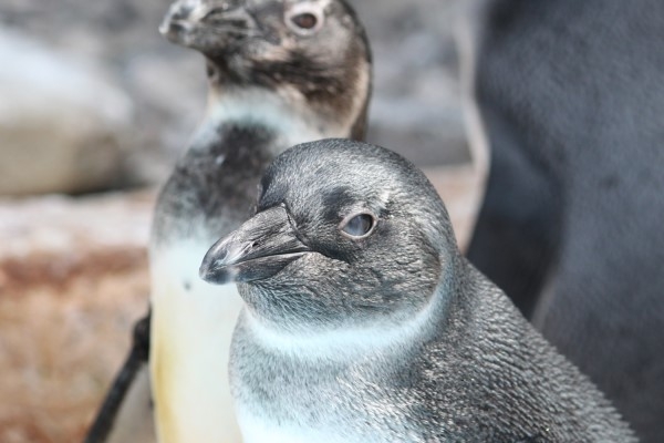 アドベンチャーワールドのケープ若鳥、凛々しいお顔です。黒目がちの目は、よく見るとクチバシ寄りが白っぽいですね。そして、そうでない部分とクッキリ境目があります。この白っぽいのは瞬膜という半透明な第三の瞼。水中で眼球表面の保護をします。人間が潜水するときにゴーグルをつけるみたいな。