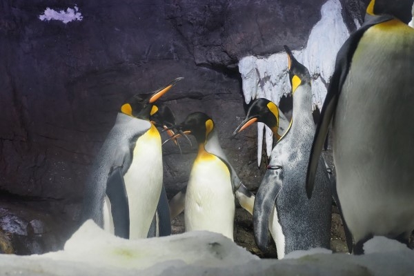 前回の続きです。中央奧では前回までの2羽がいちゃつきをつづけています。で、なんだか集まって来ちゃいました。性別に関わらず、婚活アクションを繰り広げたり隙をうかがったり。5羽に増え、