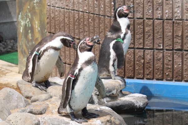 彼らはもともとチリやペルーの海岸沿いの、乾燥した地域に棲むペンギンです。野生棲息地が日本と同じ温帯なので、日本の屋外で過ごしていても大丈夫。それでも、ゆっぱり暑い時は暑い、ですよね。