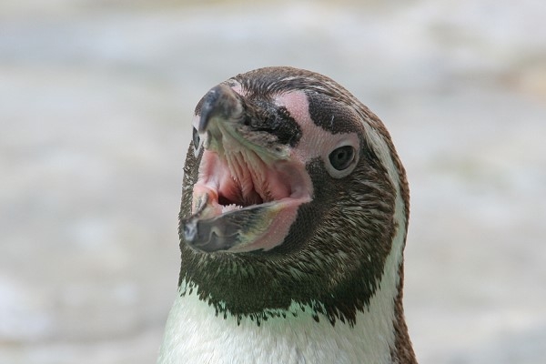 このお口でサカナを頭から丸呑みにすれば、突起が喉の奥に向かって生えているので、スムーズに入っていくわけです。ペンギンも鳥ですから、歯はありません。モデルはのんほいパークのフンボルト。