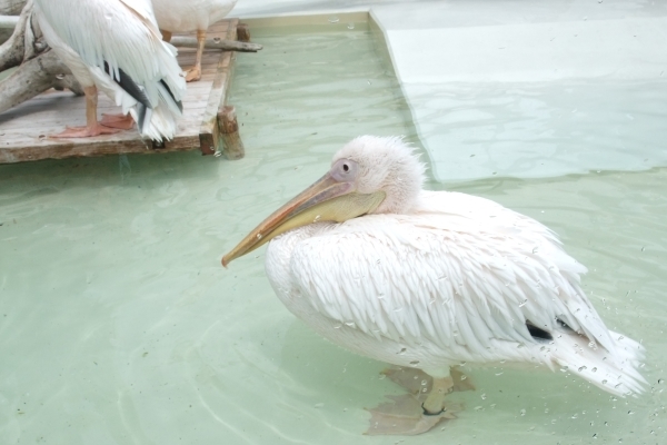 おたる水族館のペリカン。ペンギンよりは長いけど、やっぱり見た目の脚は短いです。人間の脛にあたる部分が身体の中に収まっているので、脚が短く見えるのです。