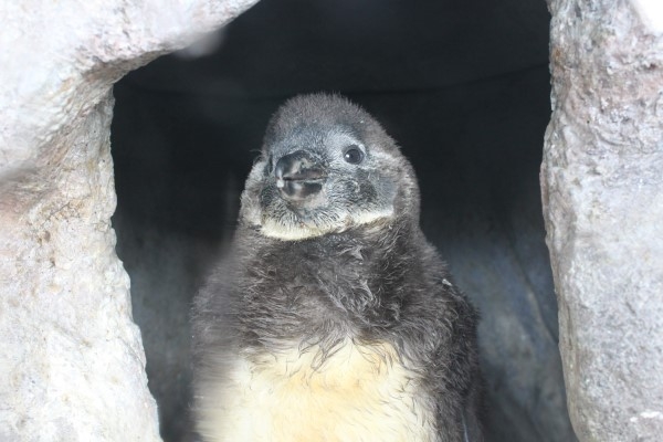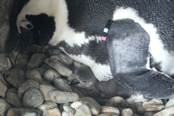 こちらは別の親子ですが、ヒナがもっと小さな頃の様子です。ケープペンギンです。掌サイズのヒナを暖めているのは、ケープのお母さん。京都水族館、冬の或日でした。