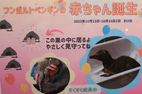 ヒナ誕生の看板。もっと小さな頃は、こんなだったのです。かりゆし水族館。