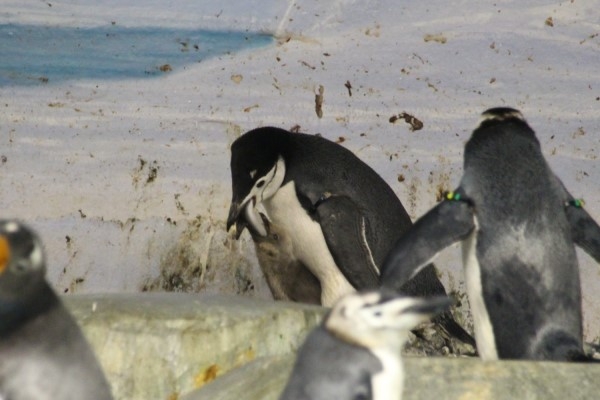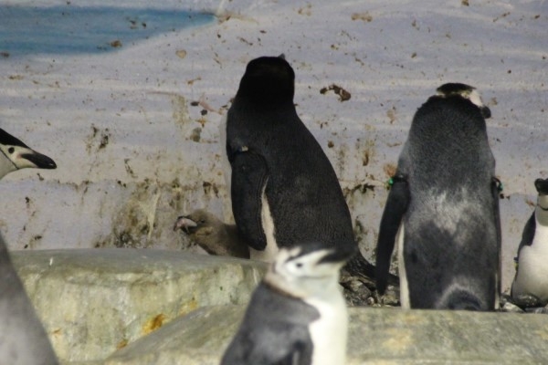 名古屋港水族館の小さなヒゲペンギンひな、食べさせてもらっているところです。サカナ1匹まるごとですね。見たところイカナゴのようです。