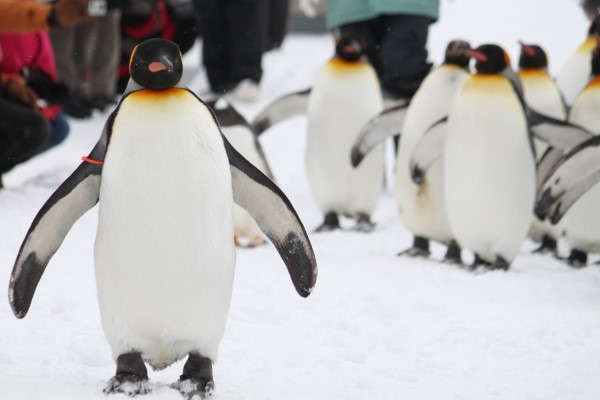 旭山動物園冬の名物ペンギン散歩。先頭を歩く1羽が、立ち止まって仲間の様子を見ているような。「あれってリーダーだよね」という声が聞こえてきます。でもじつは、リーダーでもボスでもありません。散歩が大好きだったり、テンションが上がっていたりする個体が前に出ちゃってるのです。ペンギンに群のリーダーはありませんそうで。ただ、性格に違いはあるので、行動にも違いが出るのはアリです。