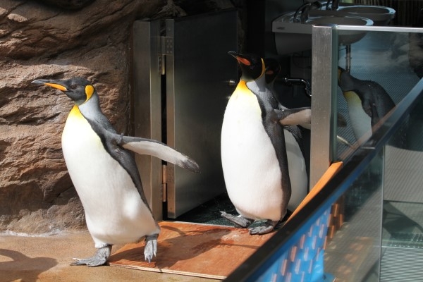 帰ったぞ~! アクアスのペンギン散歩からお戻りになったキングの皆様。