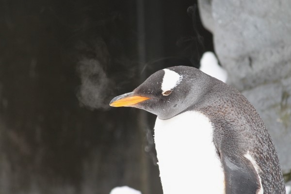 「ふーっ」と煙を吐き出すジェンツー、じゃないですよ。これは、吐く息が白いのです。旭山動物園の厳冬期でした。